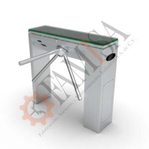 Estructura de control de acceso diseñada para regular el flujo de personas en diversos entornos. Fabricada en acero inoxidable 304 dando al torniquete resistencia a la corrosión y una máxima durabilidad. Apertura por medio de contacto seco.