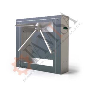 Estructura de control de acceso diseñada para regular el flujo de personas en diversos entornos. Fabricada en acero inoxidable 304 dando al torniquete resistencia a la corrosión y una máxima durabilidad. Apertura por medio de contacto seco.